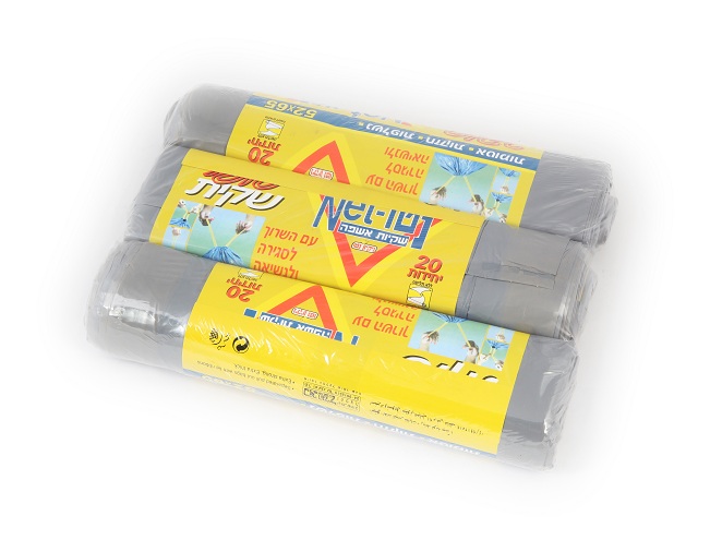 שקיות אשפה עם שרוך לסגירה ולנשיאה נוחה. השקיות חזקות במיוחד ואטומות לנוזלים. שליפה נוחה של השקיות בלי צורך לתלוש בין שקית לשקית. מידות שקית: 52X65 ס"מ כמות: 20 יחידות